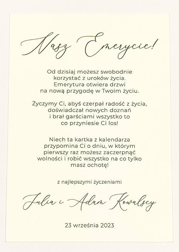 Wyjątkowe pudełko dla EMERYTA / EMERYTKI z kartką z kalendarza. Dzień emerytury to dla każdego wejście w NOWE ŻYCIE, które jest warte zapamiętania na długie lata! W cenie: