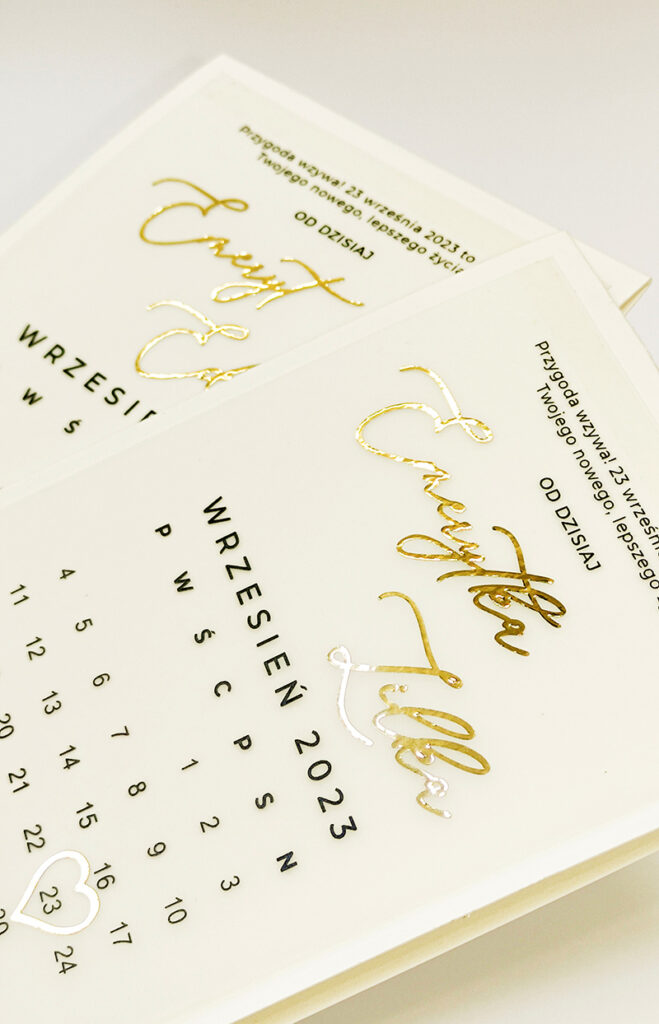 - kartka z kalendarza wykonana z kalki (nadruk) + składany element z tekturki 360g