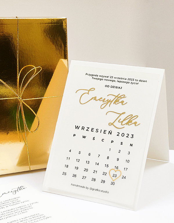 - dwa złote sznureczki (na pudełku + do związania kartki z kalendarza, gdy leży w pudełku)