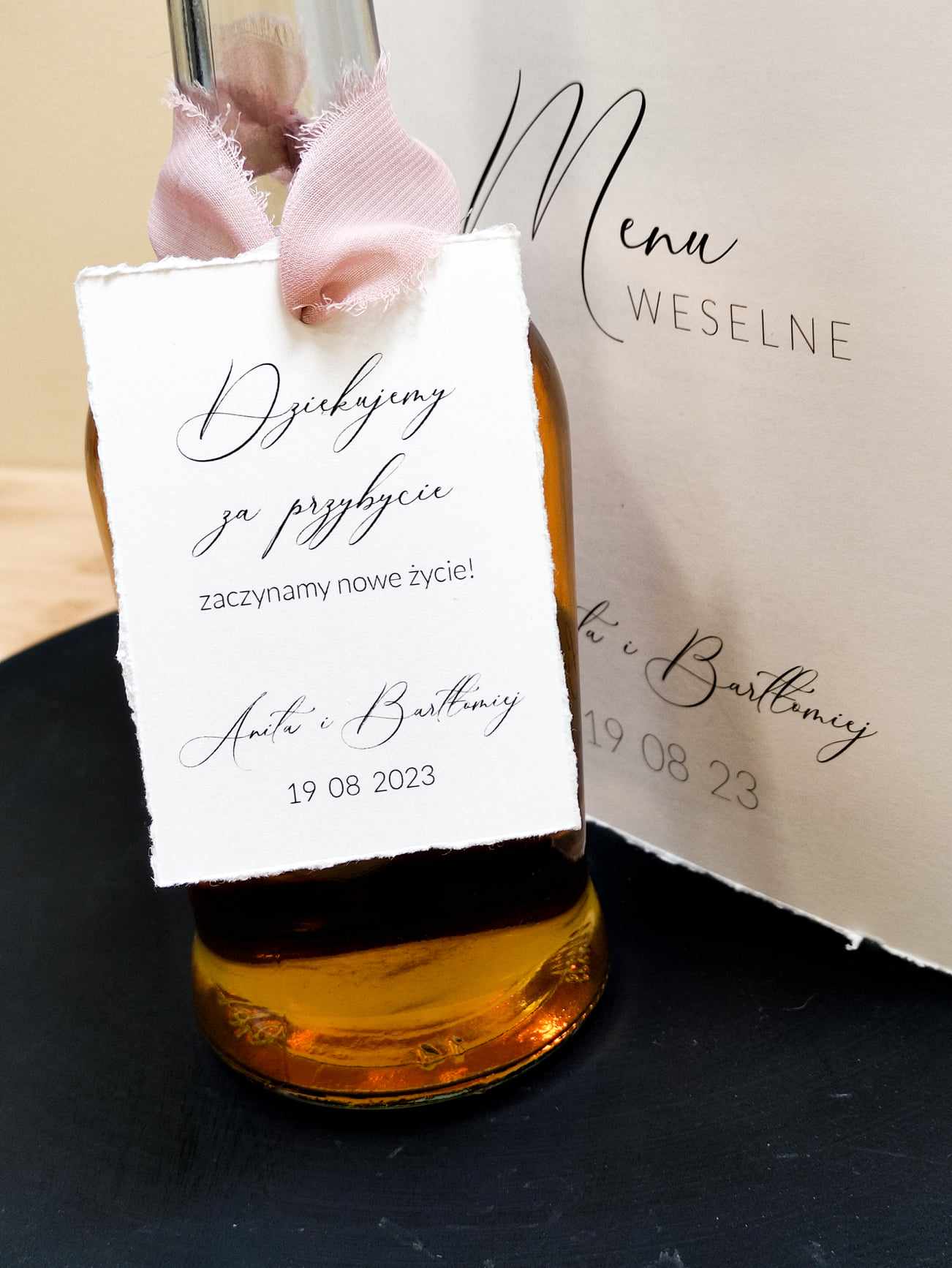 Po zakupie proszę o wysłanie tekstów* na zawieszki oraz w WYBÓR CZCIONKI i koloru wstążki szyfonowej, a także imion Państwa Młodych i datę Ślubu.